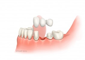 Dental bridges fill the gap of a missing tooth without replacing the root. A conventional three-unit bridge consists of crowns that are attached to your natural teeth on each side of the gap, with an artificial tooth in the middle.